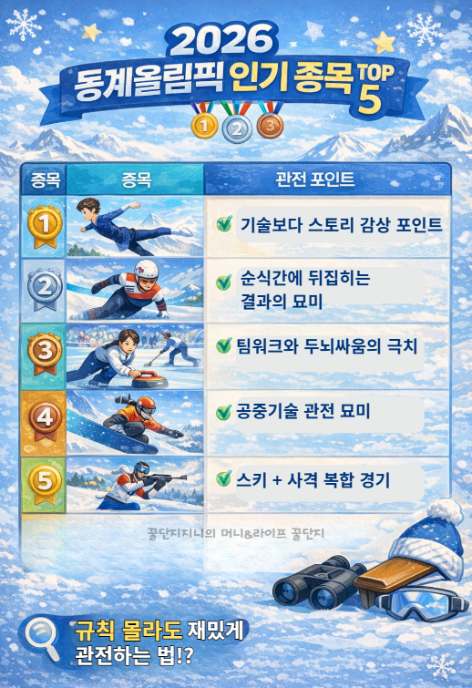 2026 동계올림픽 한국 경기 일정, 중계 플랫폼, 인기 종목 관전 포인트, 메달 유망주까지! 한국 시청자 기준으로 완벽 정리했습니다.