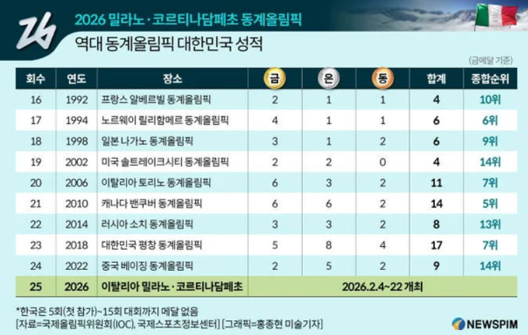 2026년, 밀라노·코르티나에서 대한민국이 다시 한번 올림픽 역사에 이름을 새길지 주목됩니다.