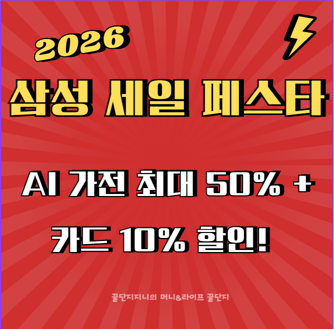 2026 삼성전자 세일 페스타(삼세페) 총정리! 1월 한 달간 최대 50% 할인, 삼성카드 10% 결제일 할인, AI 패키지 더블·트리플 혜택까지. 혼수·이사·대학생 상황별 추천 가전과 실질 할인 꿀팁을 한눈에 확인하세요.