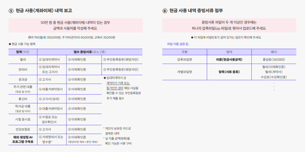 | 교육비 | 시험 접수 증빙 |