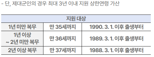 | 군 복무자 | 최대 만 37세까지 연장 가능 |