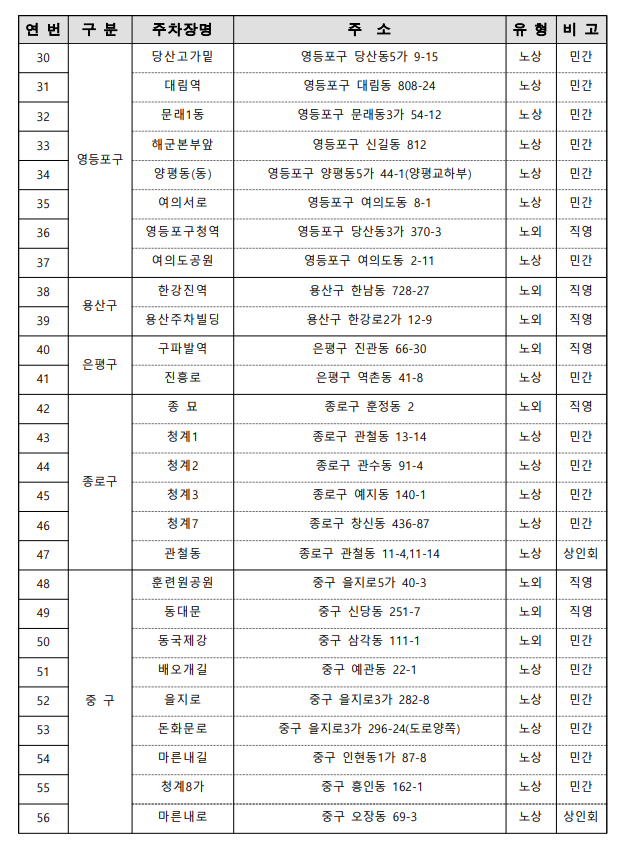 - 대상: 각 구청 산하 공영주차장 (※구청마다 정책 상이)
