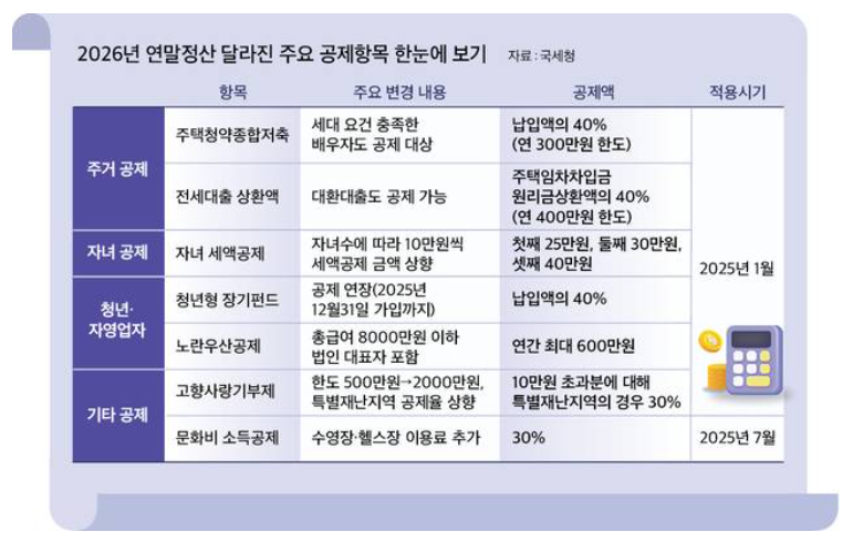 🔄 2026 연말정산 제도 변경 사항 요약 (2025년 대비)