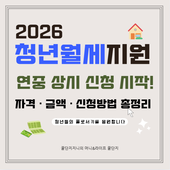 2026년부터 청년월세지원이 상시화됩니다! 만 19~34세 청년은 연중 언제든 신청 가능하며 월 최대 20만원씩 24개월간 지원받을 수 있어요. 신청 자격, 방법, 서류, 탈락 사유까지 한 번에 확인하세요.