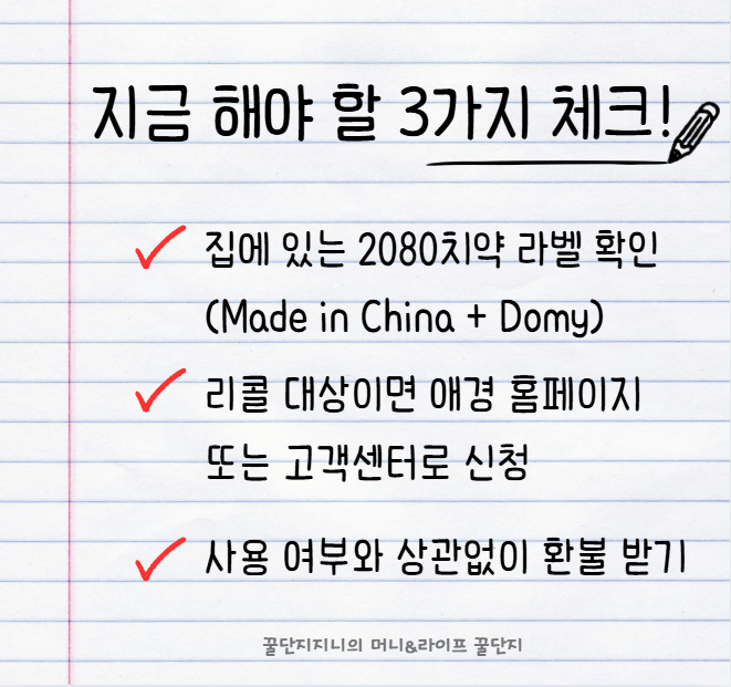 ☑️ 집에 있는 2080치약 라벨 확인 (Made in China + Domy)