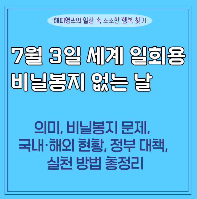 세계 일회용 비닐봉지 없는 날의 의미와 지정 이유, 환경 문제, 국내·해외 비닐 사용 현황, 정부 대책, 실천 방법까지 친절히 설명합니다.