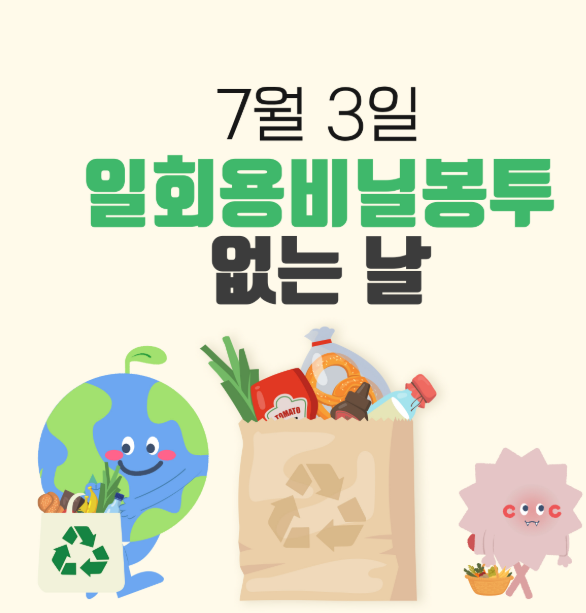 전 세계 환경 단체들이 함께 힘을 모아, 일회용 비닐 사용을 줄이자는 목적으로 7월 3일을 기념일로 선정했답니다. 😊