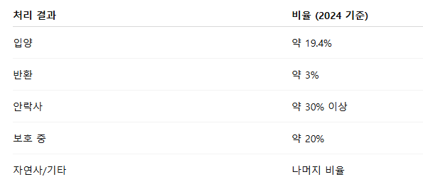 📉 고양이는 개보다 입양률이 낮고 안락사율이 높은 편입니다.