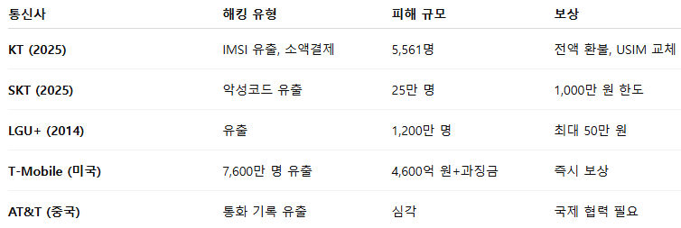 🌐 국내외 통신사 보안사고 사례 비교